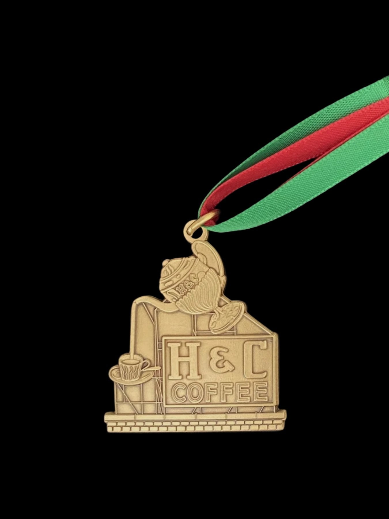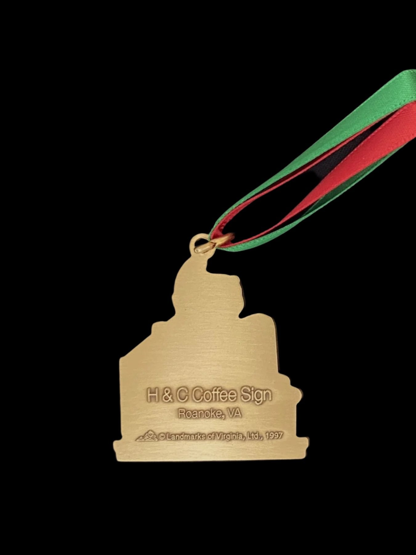 Solid Brass; brushed finish, includes ribbon Dimensions: 1 5/8” h x 1 ½” w